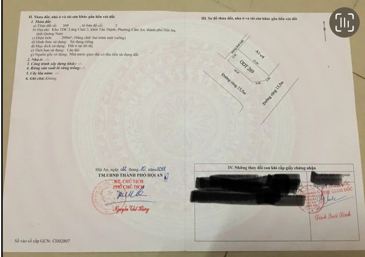 ĐẤT ĐẸP – GIÁ ƯU ĐÃI CHÍNH CHỦ CẦN BÁN NHANH LÔ ĐẤT 2 mặt tiền tại thành phố Hội An, tỉnh Quảng Nam