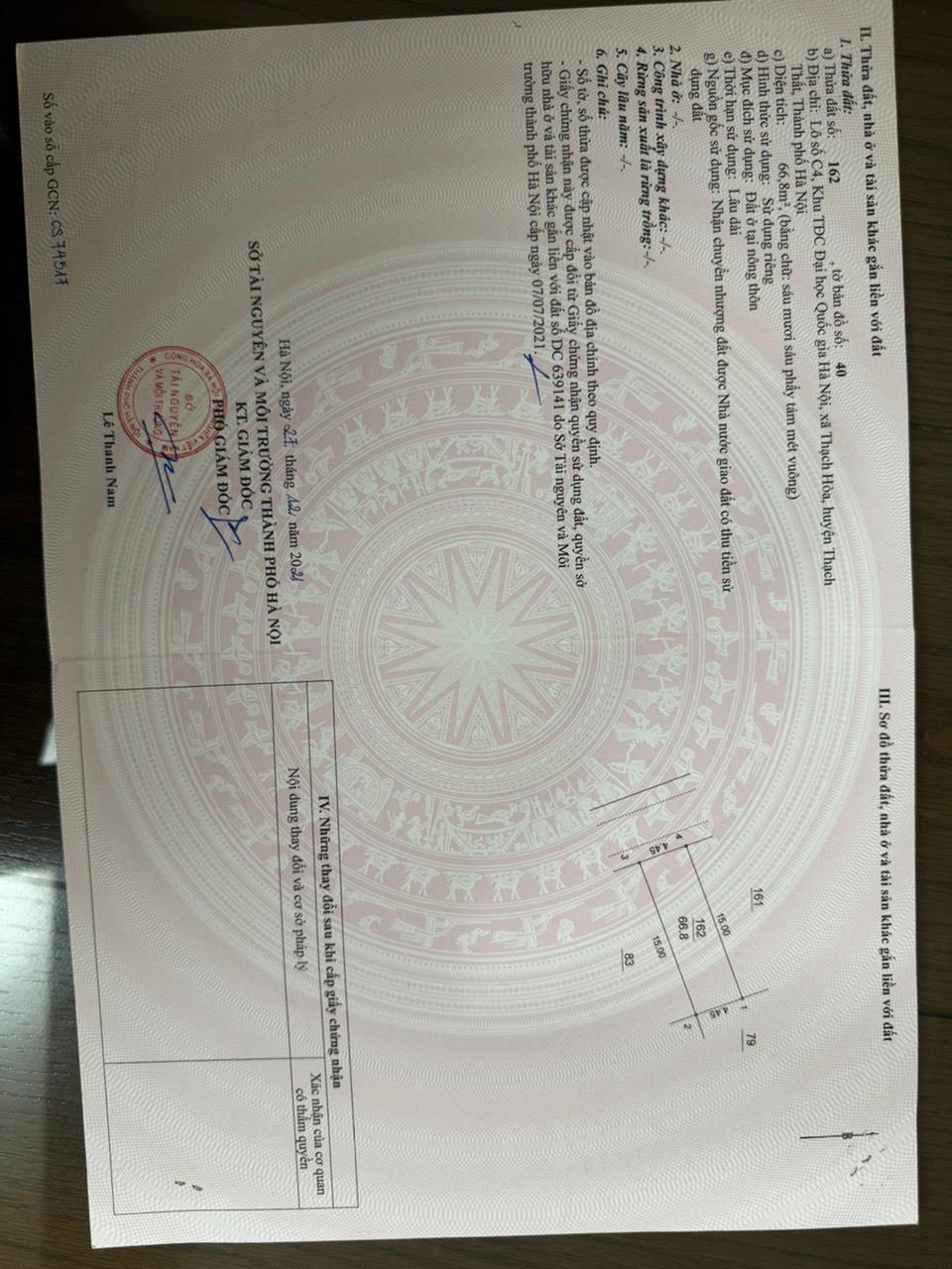 – Diện tích: 66,8m2, mặt tiền 5m, đường rộng 7m, mỗi vỉa hè rộng 3m