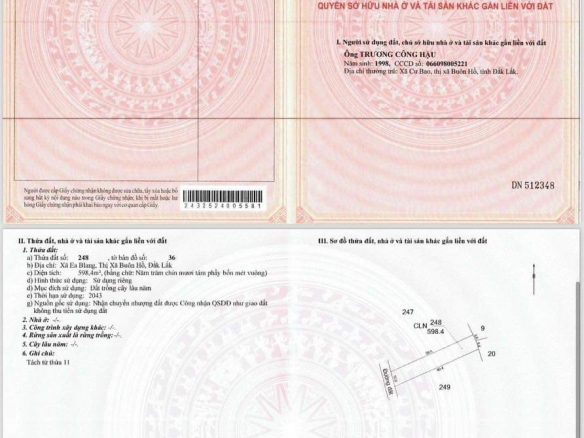 Quy hoạch thổ cư. Hiện trạng: Cây lâu năm. Sổ hồng riêng, Đường ô tô