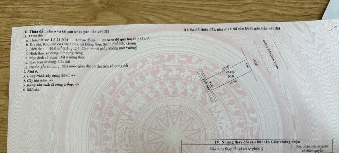 Diện tích 90m2 Hướng về Đông Nam