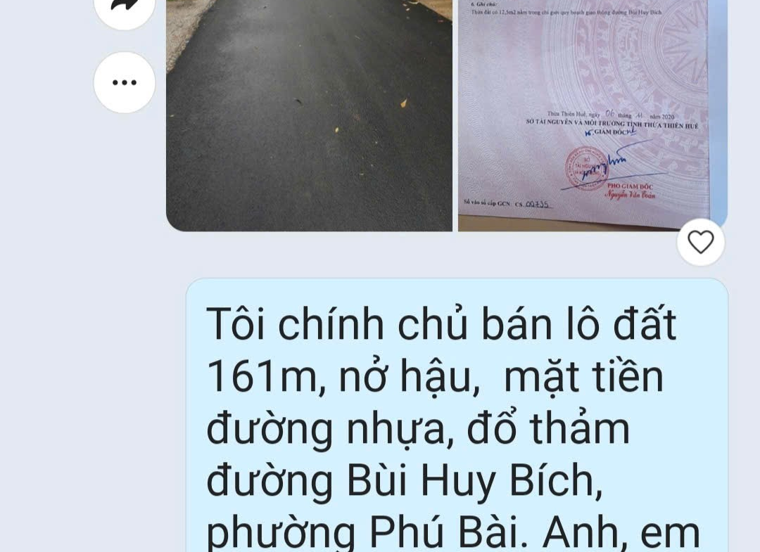 ĐẤT VỊ TRÍ ĐẸP – CHÍNH CHỦ CẦN BÁN Đất Tại Đường Bùi Huy Bích, Phường Phú Bài, Hương Thủy, TT. Huế.