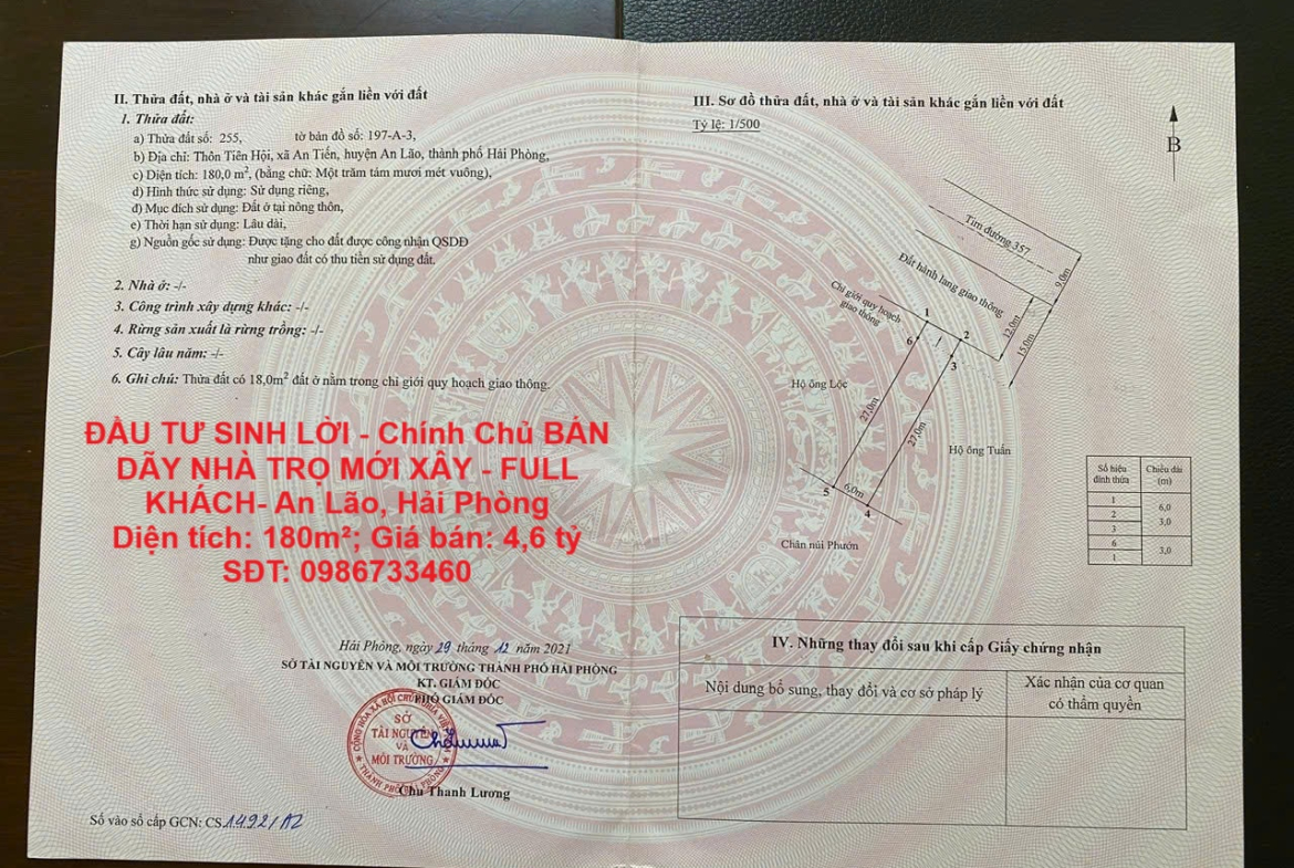 ĐẦU TƯ SINH LỜI – Chính Chủ BÁN DÃY NHÀ TRỌ MỚI XÂY – FULL KHÁCH- An Lão, Hải Phòng