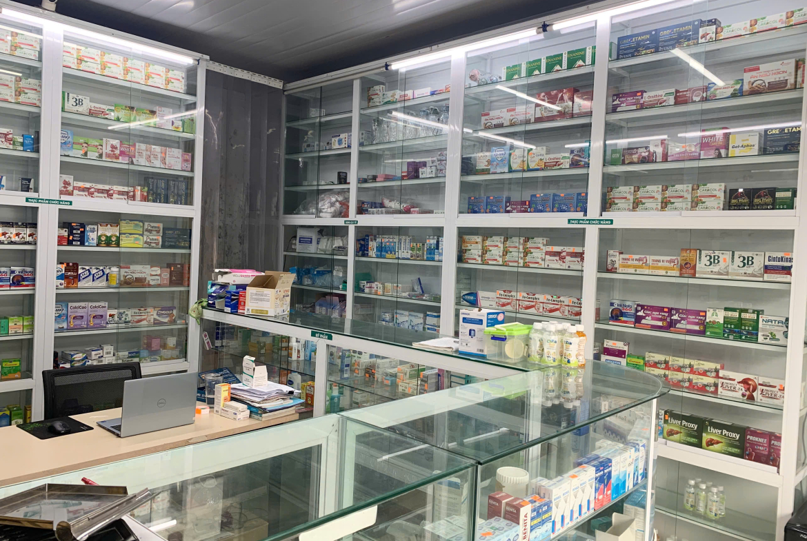 🌸Nhà thuốc quận Long Biên ,khu vực cổng chợ ,dân cư đi lại đông đúc, giao thông thuận tiện , diện tích trưng bày 20m2, diện tích phía trong để ở khoảng 20m2.