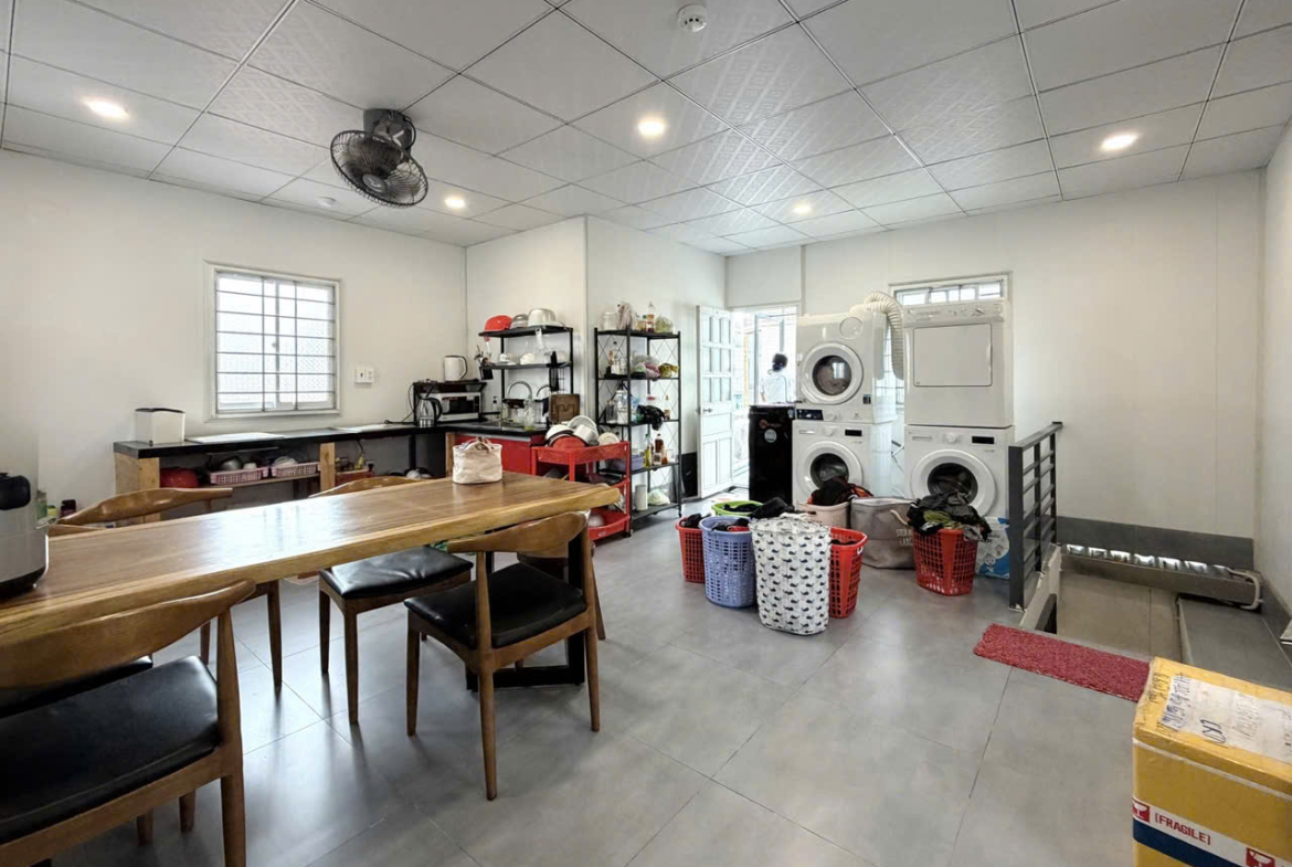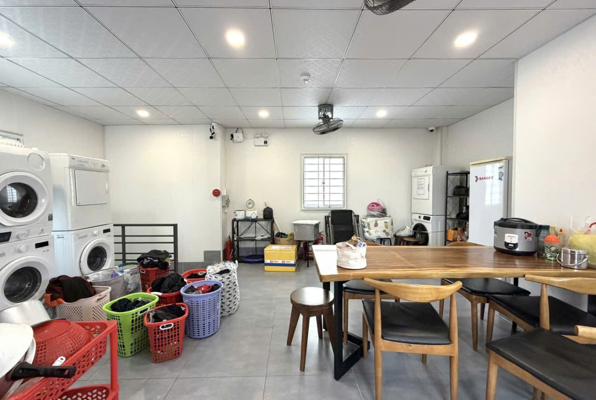 🏗️ 4 tầng: trệt + 3 lầu, bố trí 5 căn hộ kiến trúc xá, 1 căn tại trệt và 1 phòng sinh hoạt – bếp chung rộng.