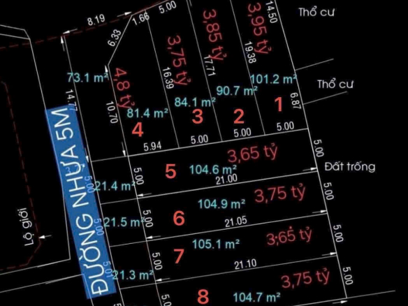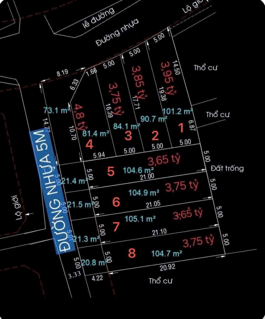 8 lô đẹp ngang 5m dài 20 – 21-23 – pháp lý sạch – chuẩn bị ra sổ