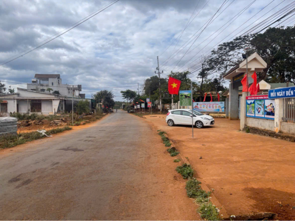 Đất đỏ bazan bằng phẳng, khu dân đông cư bàn cờ xanh mát.
