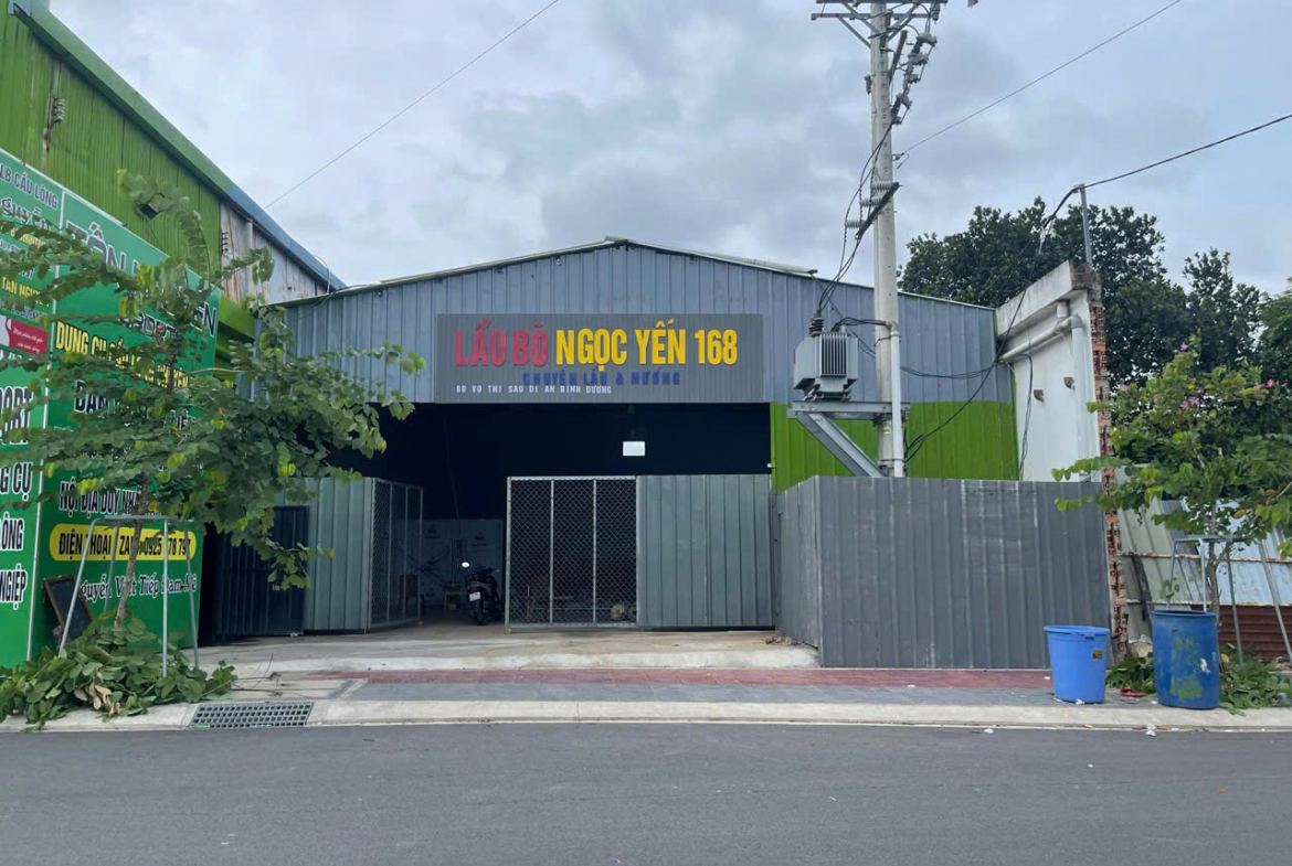 – Nhà tiền chế e xây nhà vệ sinh , Làm bạt kéo , cửa kéo , Điện nước tự kéo . Vĩa hè rộng rãi đường 8m . + Đậu đỗ xe thoải mái . 12 bộ bàn ghế cao , Bếp công nghiệp 4 họng inoxx304 , Nồi ninh , nồi app suất , Tủ đông , tủ mát , quạt công nghiệp , Kệ , lò vi sóng , máy xay sinh tố , chén dĩa ly nồi niêu .