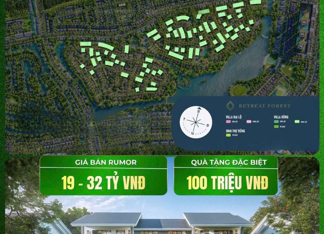 – Villa Rừng Song lập (224 căn; 359 – 362m2): 19 – 32 tỷ