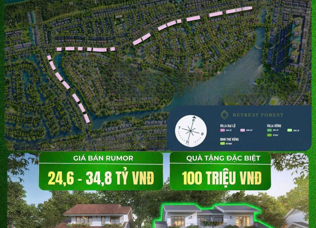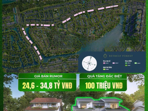 – Villa Rừng Đơn lập (262 căn; 328 – 551m2): 28 – 54 tỷ