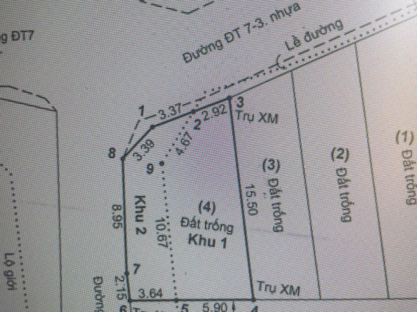 DT 8.2 × 16.5m – CN 126.1m². Trong đó có 84.2m thổ cư, còn lại CLN