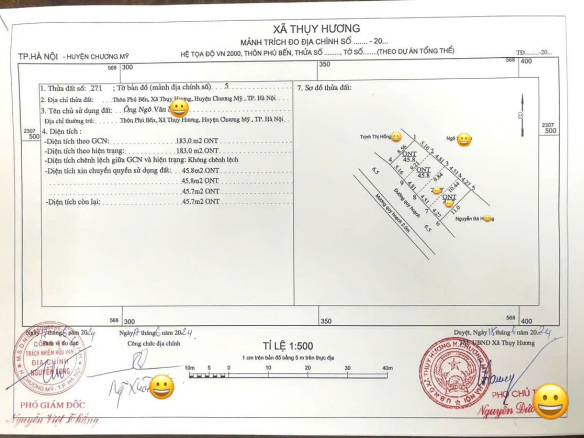 – Diện tích 45,8m, mặt tiền 5m, đường rộng thực tế 10m, rất thoáng và đẹp, đất khu vực trường học xã Thụy Hương, sân bóng đá,…