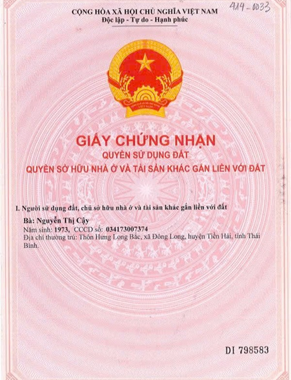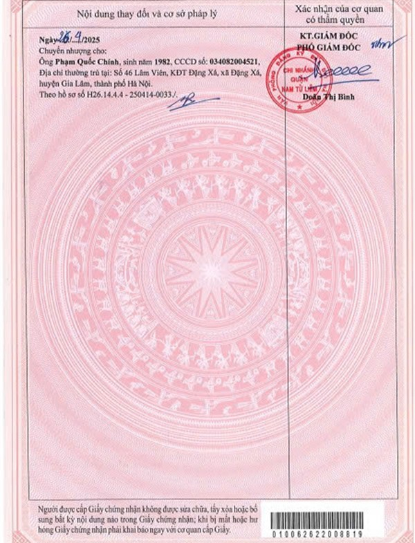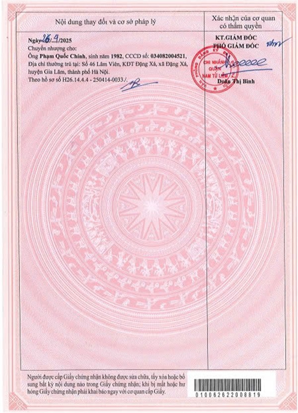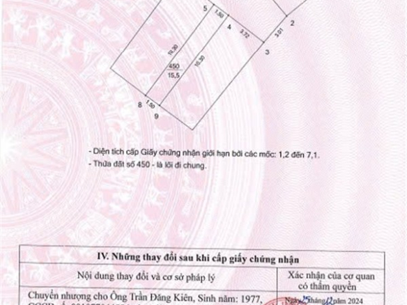 Nguồn gốc: Nhận chuyển nhượng, đã được công nhận QSDĐ