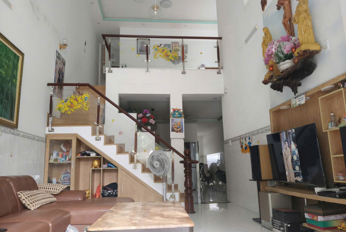 – Kết cấu : Nhà hẻm bê tông 5m xe tận nơi, nhà 1 trệt, 1 lửng ,3 phòng ngủ , 2 WC, 1 phòng thờ sân trước để đc 2_3 oto, còn sân sau có thể làm kho.. trồng trọt