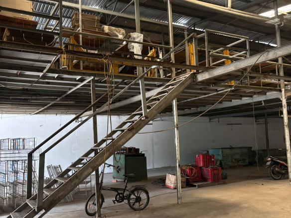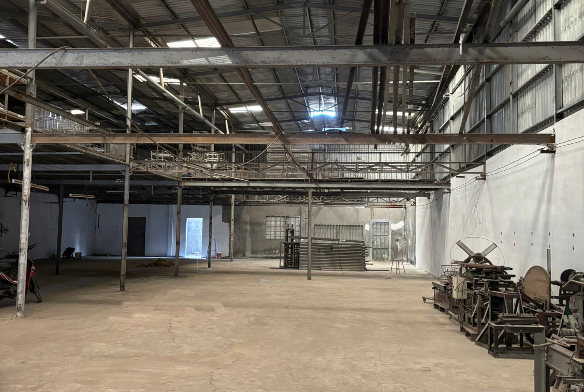 – Xưởng sẵn sàn gác cốt thép và văn phòng làm việc. Có điện 3 pha, nước , wc đầy đủ.