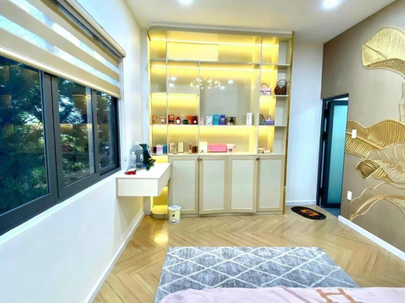 Kết cấu nhà 1 trệt 2 lầu,sân thượng bao gồm 4 phòng ngủ, 4WC. Full nội thất cao cấp, hệ thống đèn, máy lạnh, quạt trần đẹp lung linh.