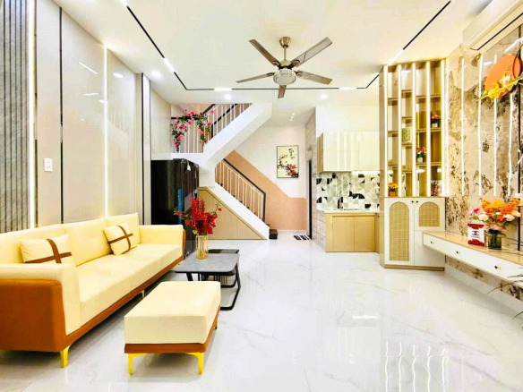 Kết cấu : 1 trệt, 2 lầu, gồm phòng khách, bếp, 2PN, 3 tolet.