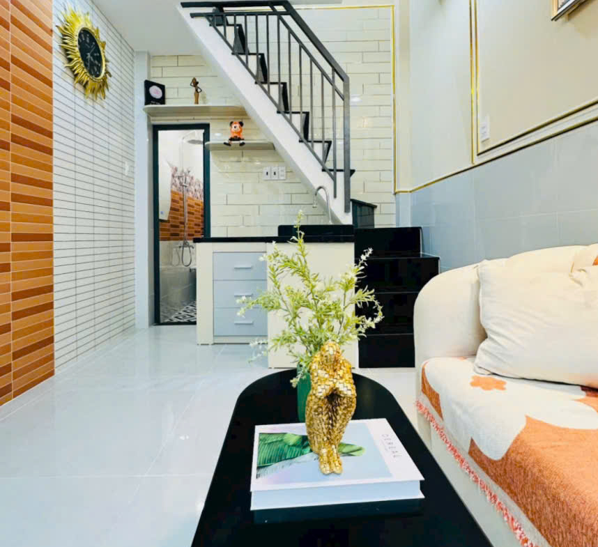 Nhà 1 trệt 1 lầu 1 gác lửng, 2wc sổ hồng riêng 15m2 đất. Diện tích sử dụng 40m2
