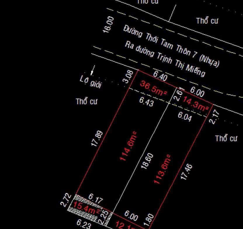 | Diện tích mỗi lô: 6m x 23m (113m² thổ cư/sổ) | ||||||