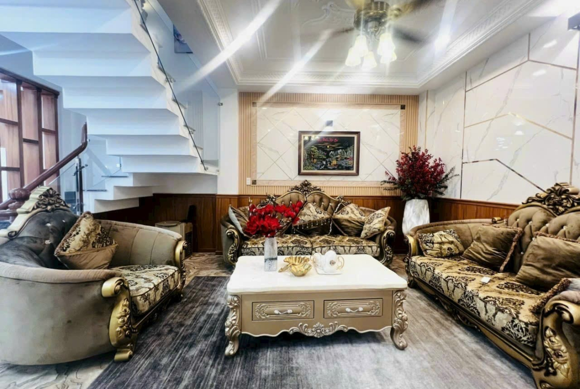 – Gồm 1 gara xe hơi. 6PN,6WC. Phòng xông hơi. 2 sân thượng. Nội thất cao cấp, nhà mới keng giao ngay.