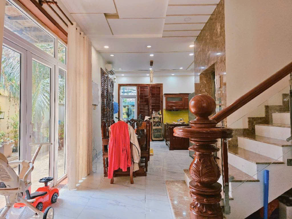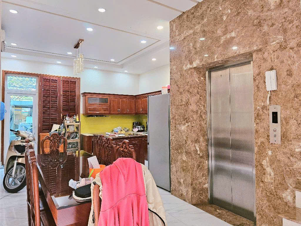 Kết cấu 1 trệt 3 lầu xây dựng kiểu Biệt thự song lập có 3 mặt thoáng, gồm 4PN, 5WC, phòng thờ, 2 sân thượng trước sau, trang bị thang máy 450kg từ trệt lên tới lầu 3.- Đường nhựa 10M có lề, ô tô đậu bên ngoài đường ngày đêm
