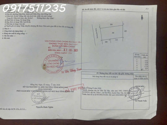 HIỆP HÒA – BIÊN HÒA,Đất sạch Ko Quy Hoạch, Sổ hồng riêng như hình , DT : 66.6m2 , Giá : 1Tỷ 550 AC có nhu cầu alo em 0917511235 Tiến Thịnh