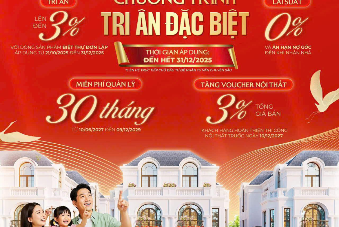 🔸Lên đến 3% dành cho khách mua Biệt thự đơn lập.