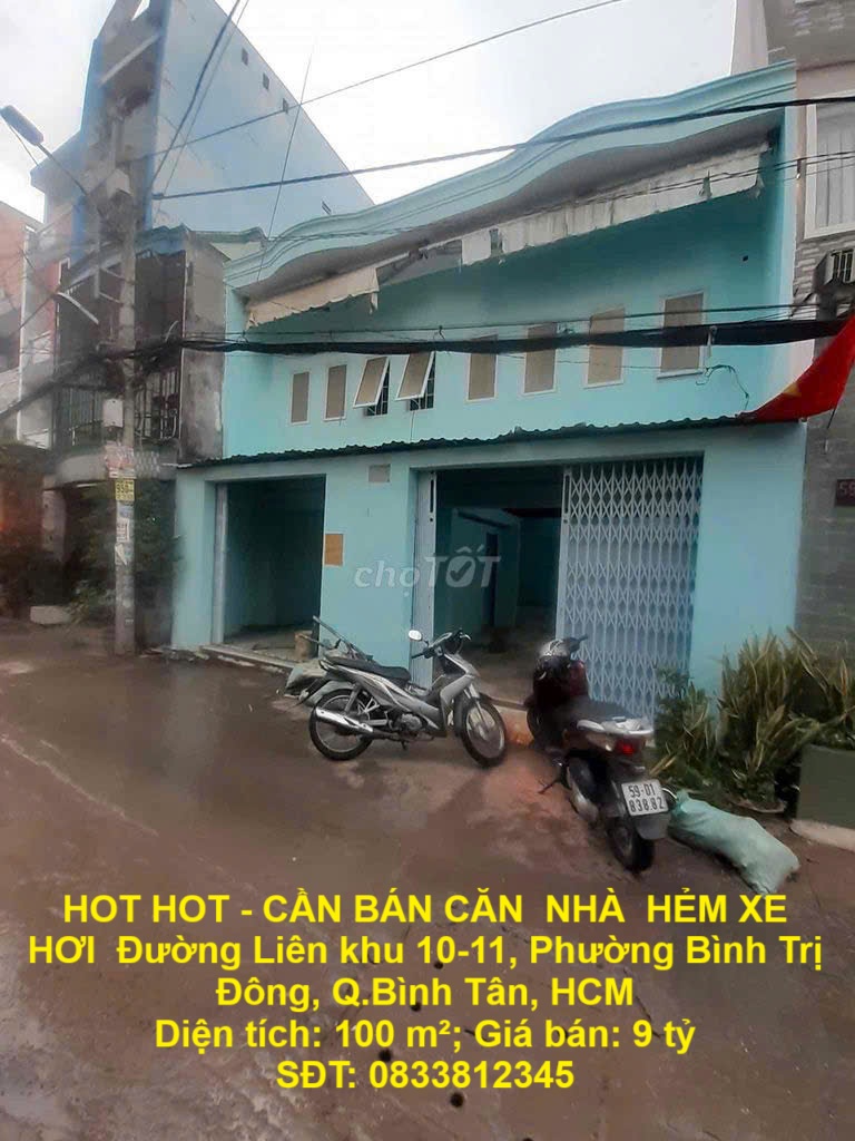 HOT HOT – CẦN BÁN CĂN NHÀ HẺM XE HƠI Đường Liên khu 10-11, Phường Bình Trị Đông, Q.Bình Tân, HCM