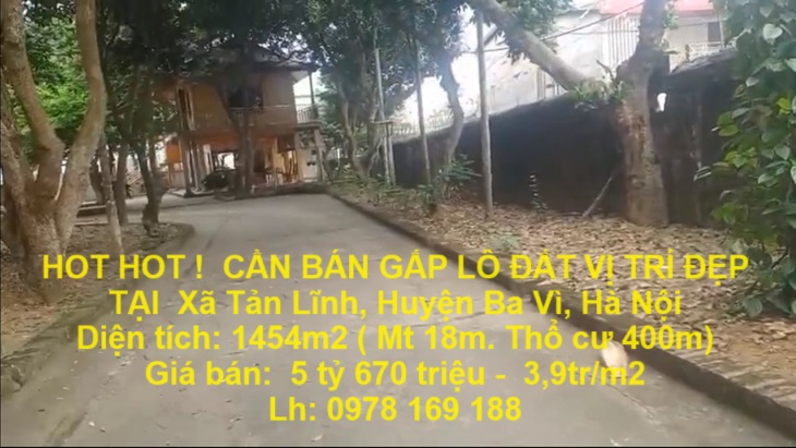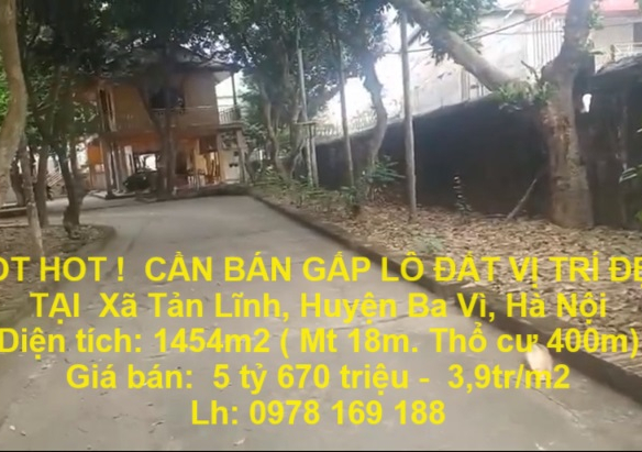 HOT HOT ! CẦN BÁN GẤP LÔ ĐẤT VỊ TRÍ ĐẸP TẠI Xã Tản Lĩnh, Huyện Ba Vì, Hà Nội