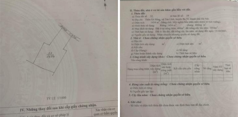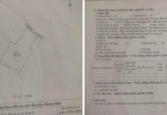 Diện tích: 1454m2 ( Mt 18m. Thổ cư 400m)