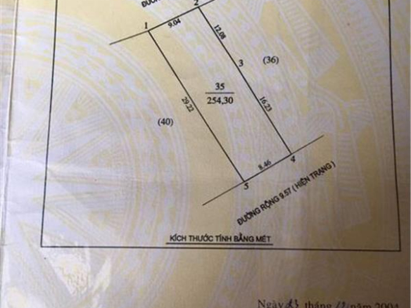 Diện tích: 254,3m2   (nở hậu ngang tr 8.6 m ngang sau 9.3m nhà hướng nam.)
