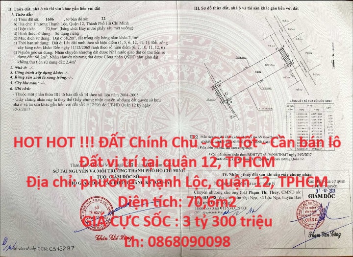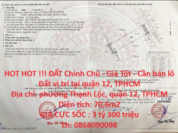 HOT HOT !!! ĐẤT Chính Chủ – Giá Tốt – Cần bán lô Đất vị trí tại quận 12, TPHCM