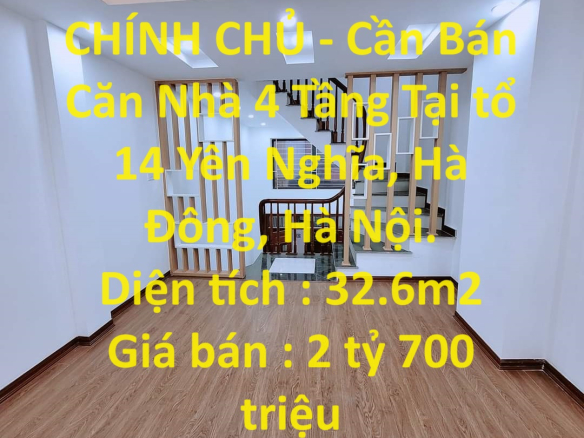 HOT HOT HOT – CHÍNH CHỦ – Cần Bán Căn Nhà 4 Tầng Tại tổ 14 Yên Nghĩa, Hà Đông, Hà Nội.