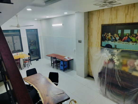 – 1 trệt 2 lầu 3 phòng ngủ – 1 phòng thờ 1 phòng khách – 1 bếp 4 nhà vệ sinh Đường 8m thông , trước mặt có công viên