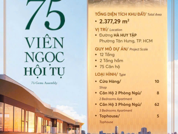 – Quy mô: 1 block cao 12 tầng & 2 hầm 75 căn hộ & 10 shophouse