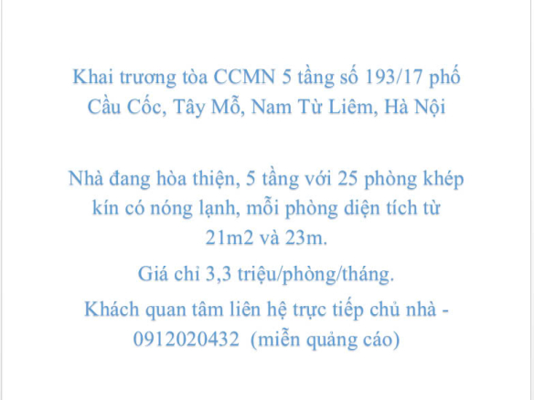 Khách quan tâm liên hệ trực tiếp chủ nhà – 0912020432 (miễn quảng cáo)