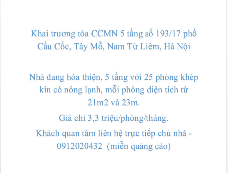 Khai trương tòa CCMN 5 tầng số 193/17 phố Cầu Cốc, Tây Mỗ, Nam Từ Liêm, Hà Nội