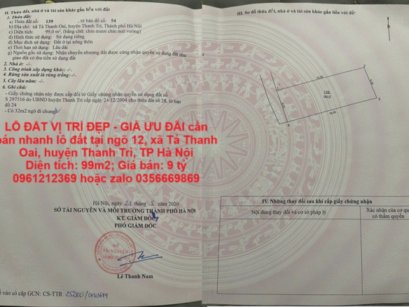 LÔ ĐẤT VỊ TRÍ ĐẸP – GIÁ ƯU ĐÃI cần bán nhanh lô đất tại huyện Thanh Trì, TP Hà Nội