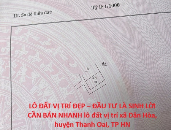 LÔ ĐẤT VỊ TRÍ ĐẸP – GIÁ ƯU ĐÃI cần bán nhanh lô đất tại xã Bình Minh, TP Hà Nội