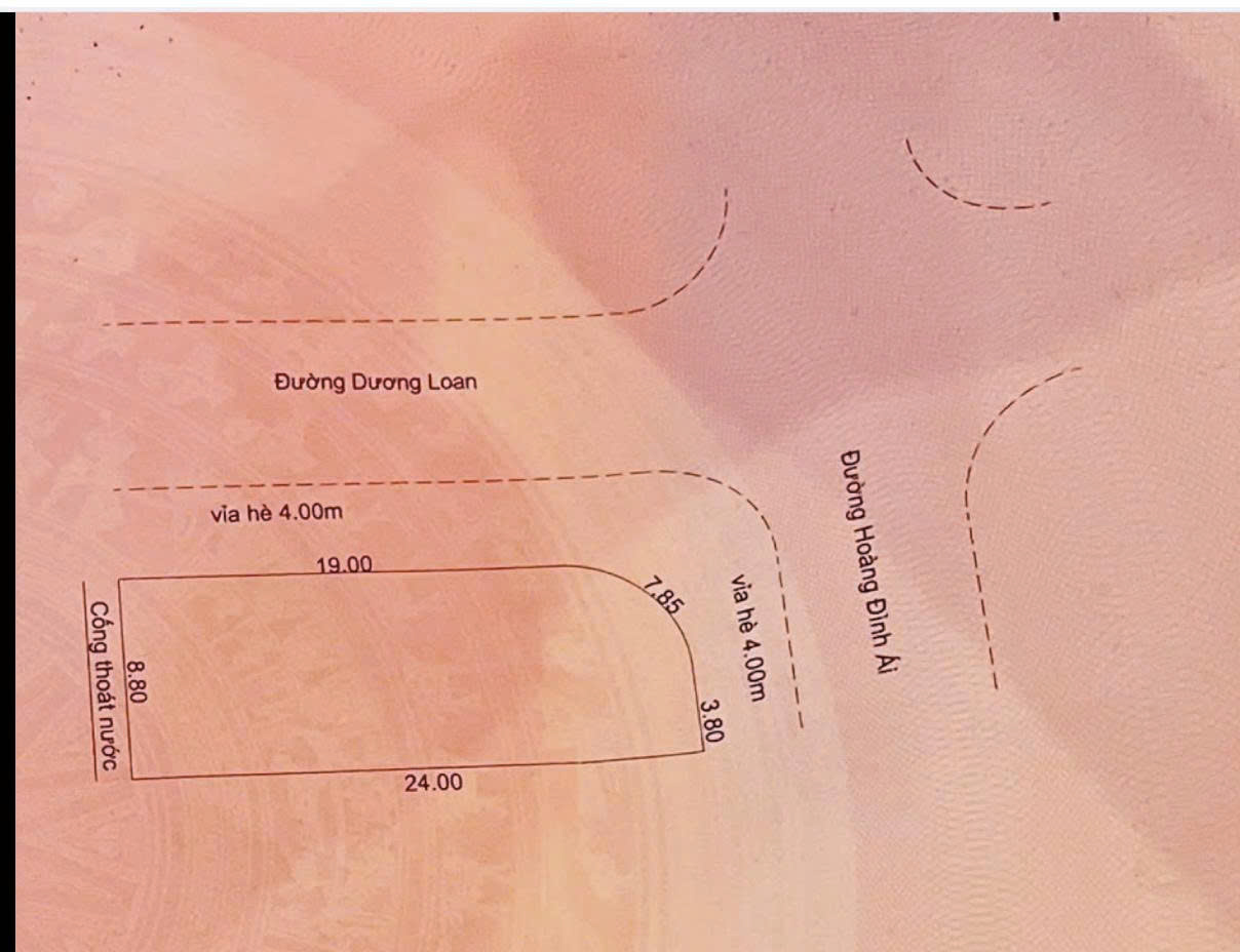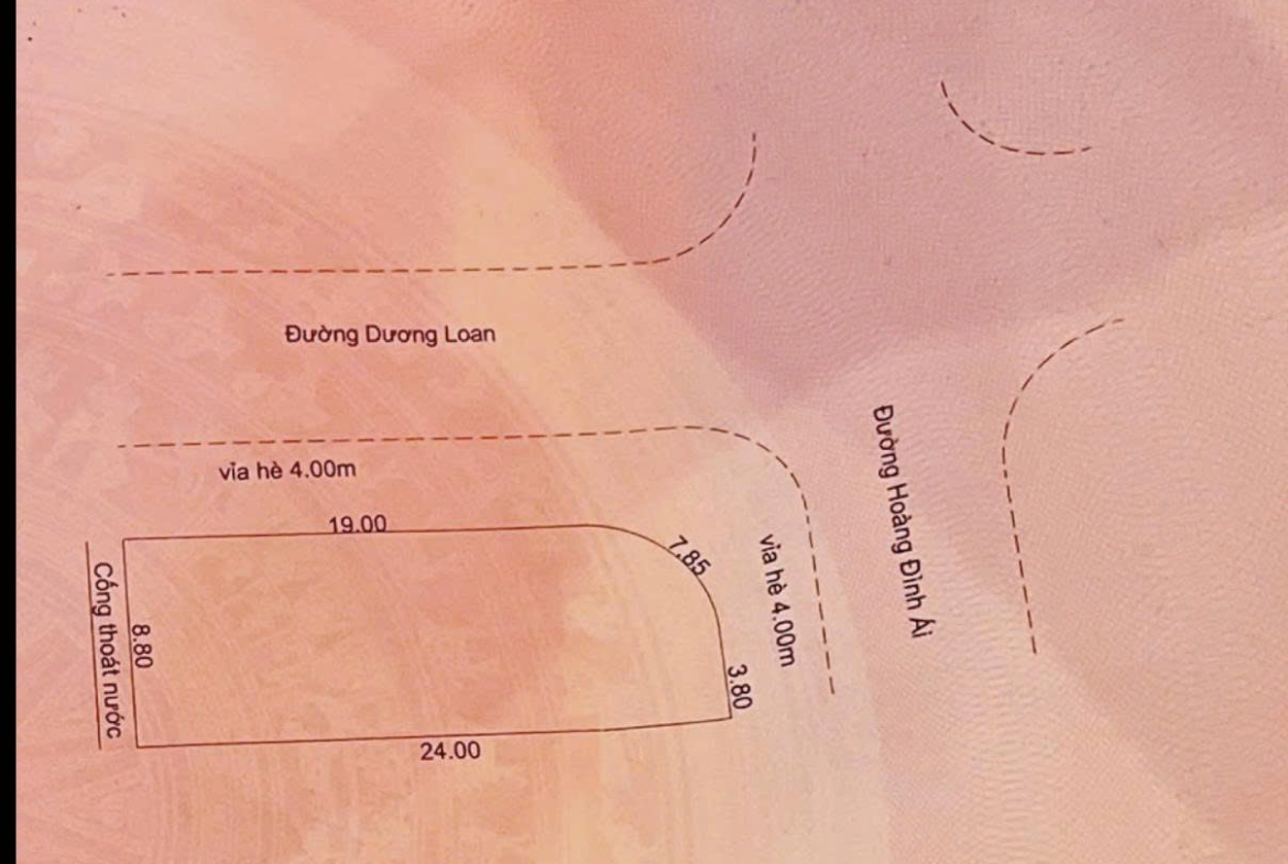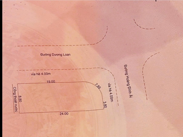Lô góc 2 mặt tiền – Dương Loan – Hoàng Đình Ái – Hòa Xuân- Cẩm Lệ – Đà Nẵng Diện tích: 205 m² (24 × 19 m)