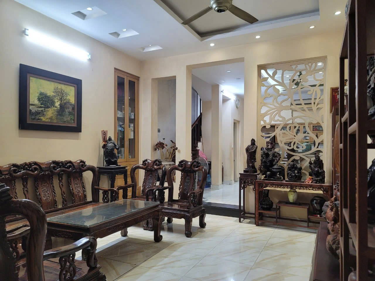 Nhà dân xây 4 tầng, wc cầu thang giữa, ô chờ thang máy, khung cột bê tông chắc chắn