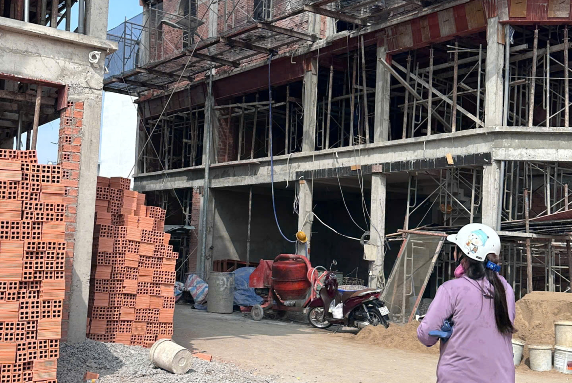 + Thiết kế: 1 trệt + 1 lửng + 2 lầu, xây móng riêng, cột riêng, tường 20 riêng.