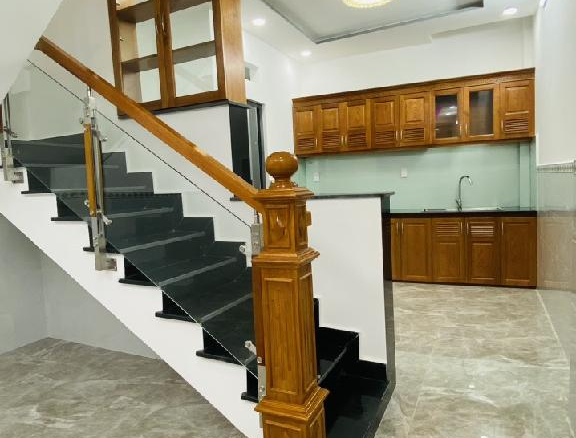 🌸 2 tầng btct. Trệt có phòng khách, bếp, wc, giếng trời thoáng mát. Lầu có 2 phòng ngủ, WC, sân phơi. Nhà xây mới, cửa nhôm Xingfa, tủ Bếp, lan can Gỗ Đỏ, kính cường lực, thiết bị vệ sinh cao cấp.
