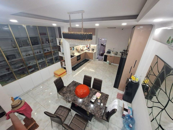 – Kết cấu: Nhà mới xây 3 tầng, thiết kế hiện đại, thông minh, tiện nghi, có 5 phòng ngủ, 5 WC, sân thượng, phòng khách, bếp; mỗi phòng đều có cửa sổ riêng thoáng mát, đáp ứng đầy đủ nhu cầu sinh hoạt cho gia đình nhiều thế hệ.