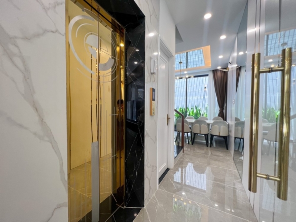 Xây dựng: 1 trệt, 2 lầu, sân thượng thoáng mát , thang máy cực tiện lợi cho trẻ em và người lớn tuổi.
