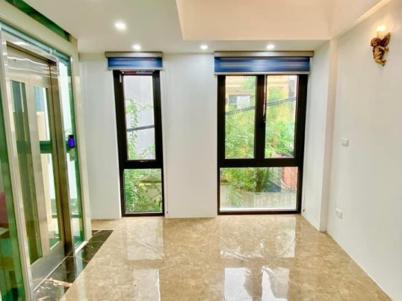 Nhà xây 5 tầng, có 4 phòng ngủ, có 5 wc, có thang máy. Nhà đẹp, xây khung cột bê tông chắc chắn.