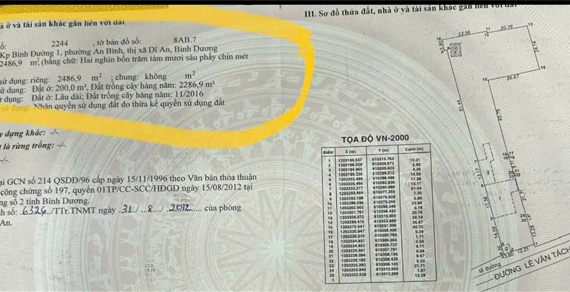-Diện tích: 2.486,9 m² – ngang 16m, có 350m thổ cư