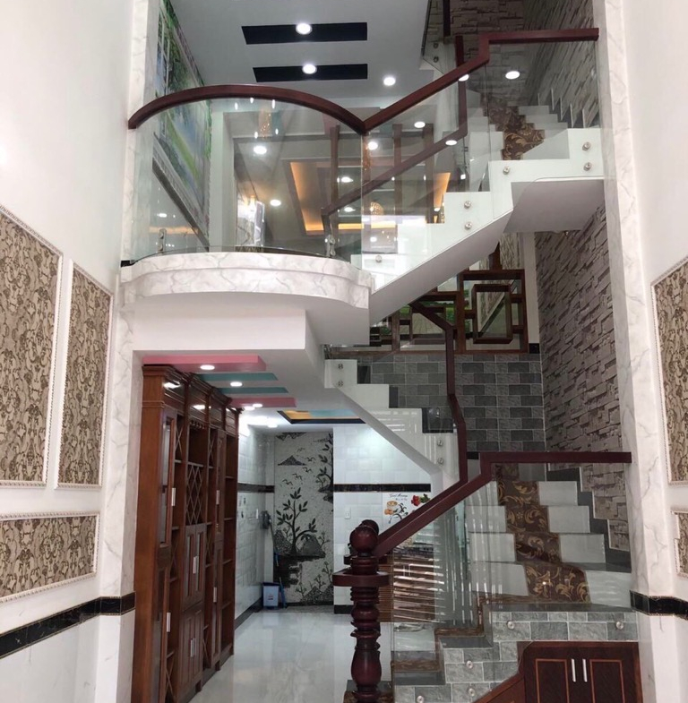 -1 trệt lửng, 2 lầu, sân thượng BTCT 5 pn, 4wc, nhà đẹp vào ở ngay. ,
