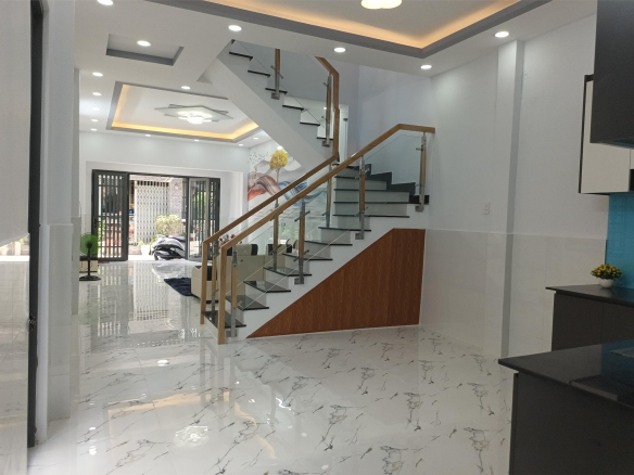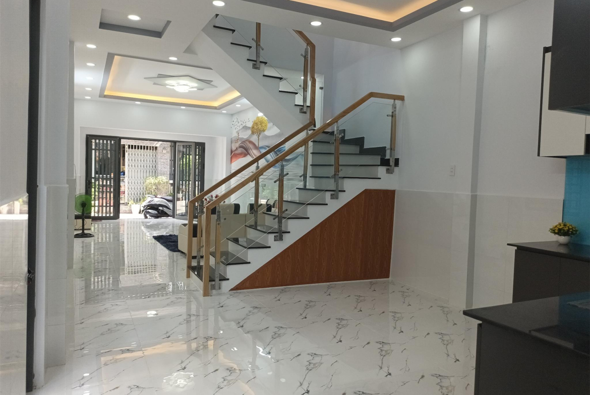 Nhà đẹp ở ngay 1 trệt 1 lầu đúc BTCT có 2PN, 3WC, phòng khách rộng rãi, bếp thông thoáng, có cửa sau mát mẻ. ban công, sân phơi.