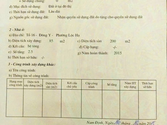 – 85m2 * 3 tầng xây kiên cố, móng cọc bê tông, khung cột chắc chắn, tường gạch 20cm, nhiều phòng ngủ, wc, phù hợp với gia đình đông người.