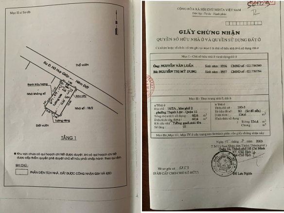 Diện tích: 62,6m2, diện tích đất: 124,6m2
